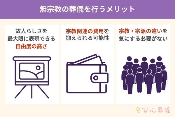 無宗教の葬儀を行うメリットは大きく3つあります。