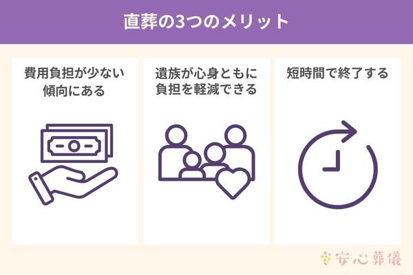 直葬のメリットは一般的な葬儀よりも、葬儀費用が抑えやすいだけではありません。