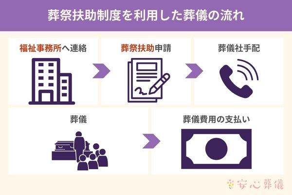 福祉事務所もしくは役所の福祉課窓口へ出向き、葬祭扶助の申請手続きを行います。