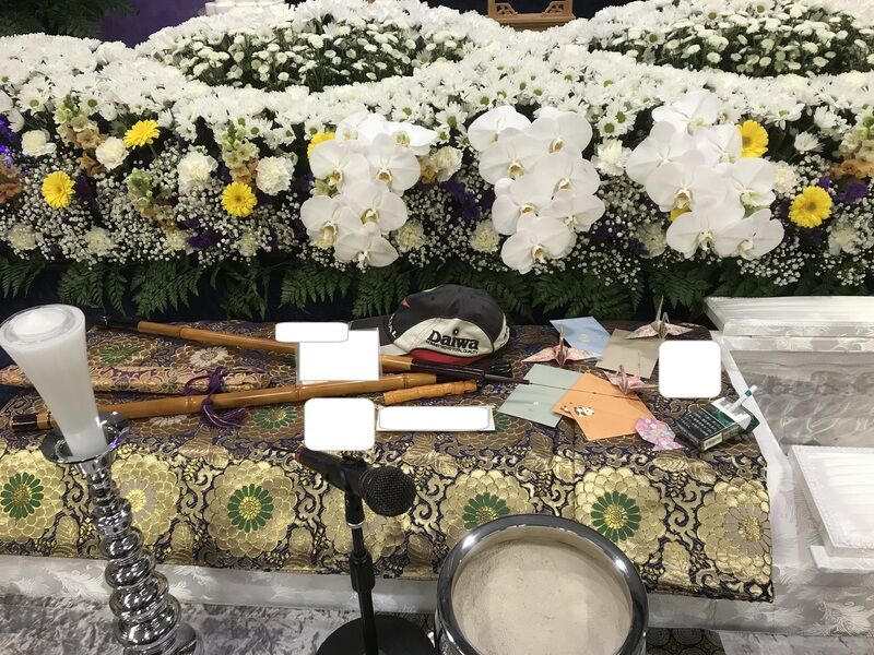 有限会社セレモニー三敬の葬儀事例「所沢市斎場での家族葬(1日葬)、故人様の趣味をイメージした生花祭壇の家族葬」(所沢市斎場第三式場/所沢市斎場)