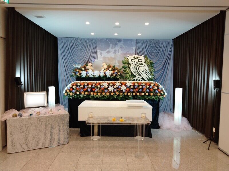 | 葬儀社の担当者コメント | 故人様らしさを祭壇に反映し、無宗教形式のお別れ会です。出棺前に故人様を囲む会食を行い、参列の皆様が最後まで故人様と共にできる空間をお創りいたしました。 |