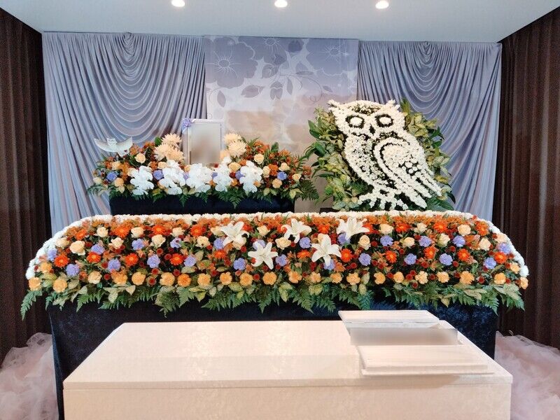 ご親族のみのご葬儀でも華やかな祭壇をご希望で選べる花祭壇から故人様に似合う祭壇をお選びいただきました。精...