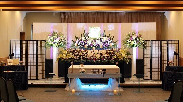 桐ヶ谷斎場 雪の間にて花祭壇の無宗教葬