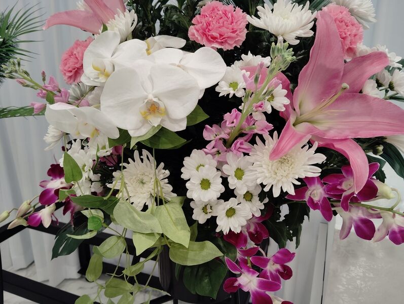 ご親戚、会社関係、ご友人皆様から頂いた心のこもった生花です。 たくさんのお花でお別れができました。