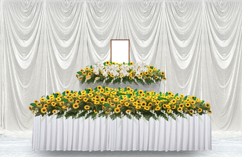 (28/30) 葬儀事例: オーダーメイド祭壇ひまわり 臨海斎場1日葬