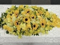 | 葬儀社の担当者コメント | 遺族の故人への愛情と、どこにいても幸せであってほしいという願いを込めた(ひまわり)一面のオーダーメイド祭壇をご希望いただきました。あたたかいご参列者に囲まれて愛情いっぱいのご葬儀とさせていただきました。同様にひまわりでお作りさせていただいた棺上花は、お式の後アレンジにお差し替えさせていただきご自宅にお持ち帰りいただきました。 |