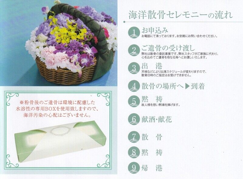 ベルコのお葬式【八戸ノ里】の葬儀事例「「海洋散骨」大阪市立北斎場」(大阪市立北斎場)