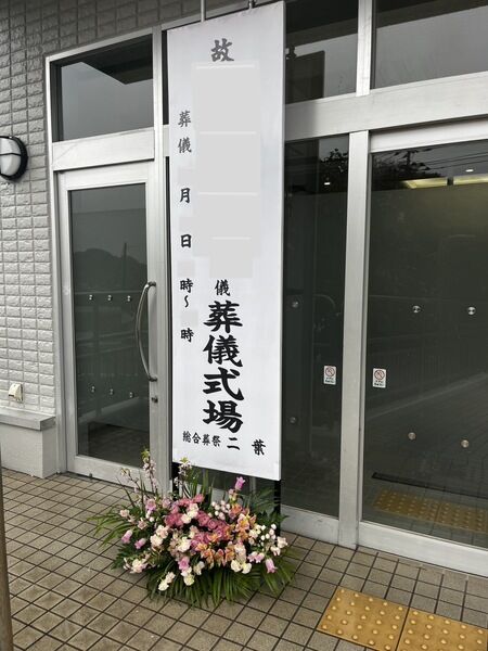 喪主を務められた奥様を中心に、ご家族様に見守られながら穏やかなお見送りとなりました。式場の入り口には、お...