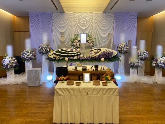 | 葬儀社の担当者コメント | 喪主を務められた奥様を中心に、ご家族様に見守られながら穏やかなお見送りとなりました。式場の入り口には、お写真やアレンジメントが飾られ、訪れる方々が足を止めて故人様との思い出に触れられるあたたかな空間に。また、ご葬儀までは一度ご自宅へお帰りになられ、ご家族様とゆっくりとした時間を過ごされました。ご自宅でのひとときは、故人様を想うご家族のやさしいお気持ちが感じられる、大切な時間だったのではないかとおもいます。祭壇のやわらかな色合いと灯りに包まれながらのお旅立ちとなりました。 |