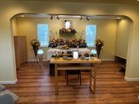 喪主を務められた奥様を中心に、ご家族様に見守られながら穏やかなお見送りとなりました。式場の入り口には、お...