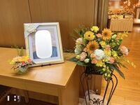 ご家族に見守られながら、想いのこもったお見送りとなりました。 会場内外にはお供え物や思い出の品々が数多...