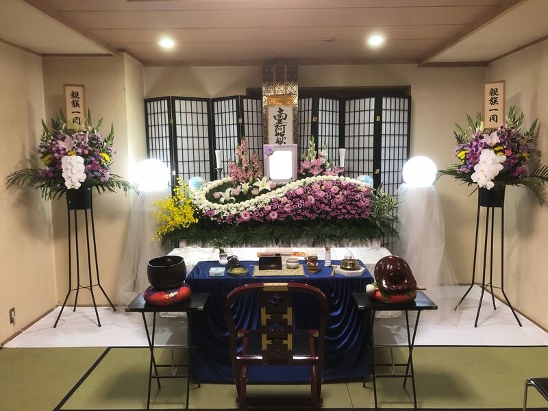 瓜破斎場の式場でのご葬儀をご希望されており、一般の方も少数お招きされたいとのことでした。 祭壇などは御...