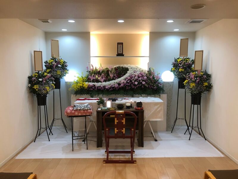 瓜破斎場の式場でのご葬儀をご希望されており、一般の方も少数お招きされたいとのことでした。 祭壇などは御...