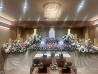 真行院での一日葬です。150名もの大勢の方々に見守られてのご葬儀となりました。たくさんの花々に囲まれ、故...