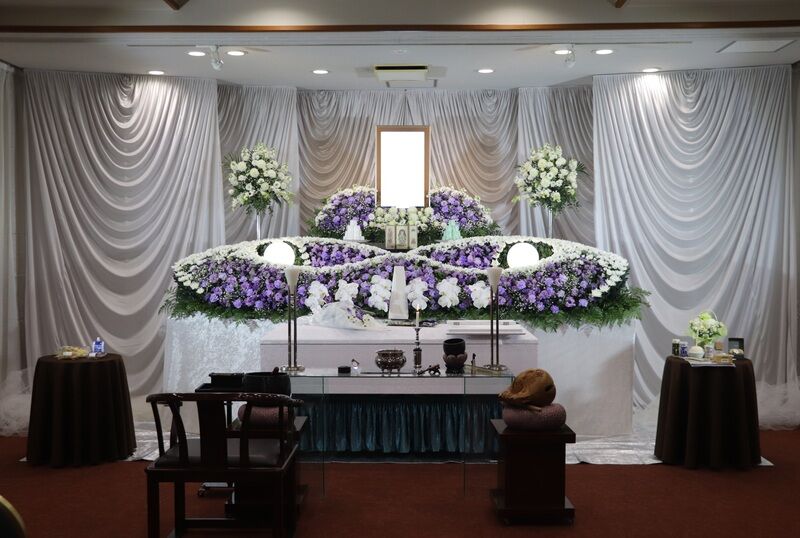 落合斎場別館にて、家族・親族15名様による仏式の一日葬をお手伝いさせていただきました。式場には紫を基調と...